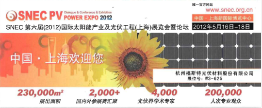 SNEC第六屆(2012)國際太陽能產業及光伏工程(上海)展覽會暨論壇