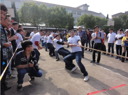 福斯特作為臨安市錦北街道轄區企業,積極組織員工參加籃球、羽毛球、象棋、障礙接力、拔河等系列賽事。特別值得一提的是障礙接力與拔河比賽,在障礙接力項目中,福斯特兩名隊員在穿越障礙過程中不慎摔倒受傷,但仍堅持比賽,最終贏得了第四名的好成績,為團體贏得了寶貴的積分;拔河比賽則更為激烈和精彩,小組賽中福斯特以小組第一輕松出線,在接下去的8進4和半決賽中,福斯特隊員所向披靡,以兩個2:0的戰績成功晉級。決賽階段,隨著比賽哨聲一響,啦啦隊和周圍觀眾齊聲高呼“一二,一二”加油口號,隊員們根據隊長事先精心布置的戰術先穩住陣腳,固守防線,然后在有節奏的加油聲中,一鼓作氣再次獲得2:0,以絕對優勢、全勝的戰績榮獲冠軍。