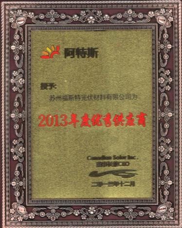 蘇州福斯特被阿特斯評為“2013年度優(yōu)秀供應商”