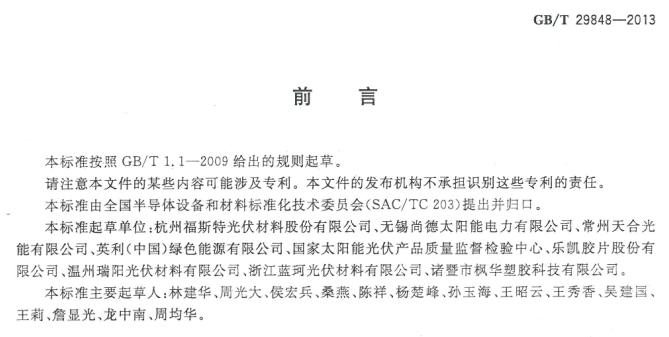 近日,《光伏組件封裝用乙烯-醋酸乙烯酯共聚物(EVA)膠膜》國家標準紙質版正式發行。該標準由杭州福斯特光伏材料股份有限公司為主編單位,于2013年11月12日正式發布,2014年4月15日開始正式實施。目前,該標準的紙質版在各地新華書店有售。