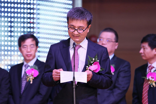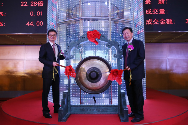 臨安市委書記張振豐與公司董事長林建華共同鳴鑼開市。