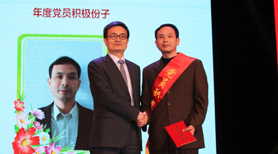 一個(gè)黨員,一面旗幟,一個(gè)黨員,一樹(shù)先鋒。——福斯特黨員積極分子頒獎(jiǎng)