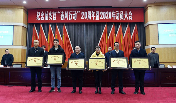 2020年1月13日下午,紀念臨安區“春風行動”20周年暨2020年動員大會召開。福斯特現場捐款50萬元,并榮獲“春風行動愛心企業”的榮譽。